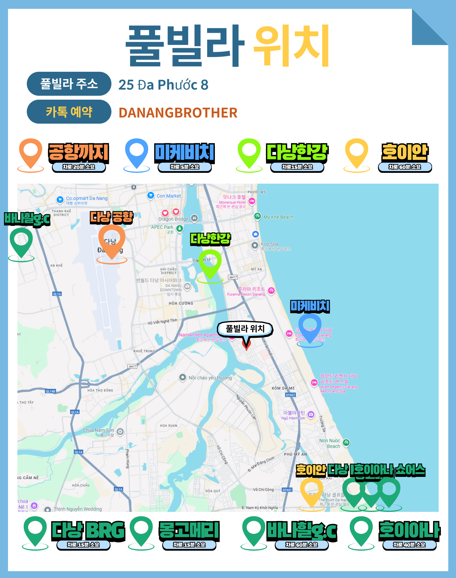 -해당 풀빌라 상품은 다낭 브라더 투어 에서 판매 대행하고 있으며, 실제 운영은 25 Đa Phước 8 에서 주관 합니다.